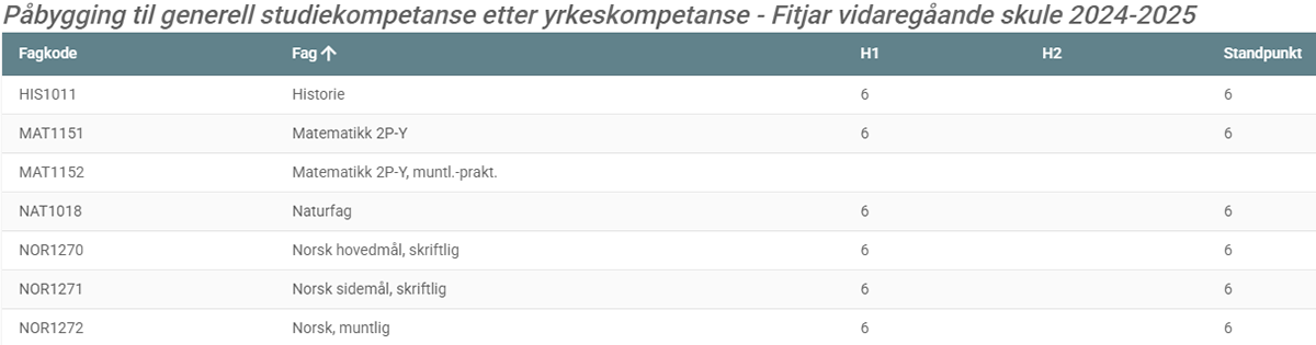 Karakterer fra NOR1270 og NOR1271